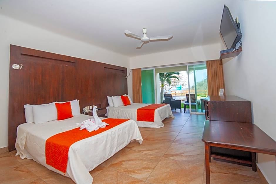 The spacious double room provides air conditioning, a wardrobe, a terrace with pool views as well as a private bathroom featuring a shower. The unit offers 2 beds.